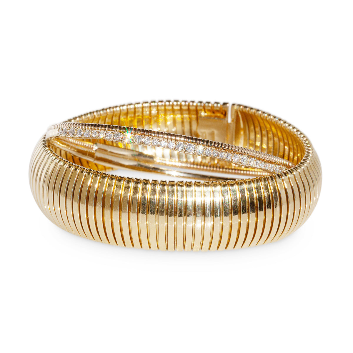 This sleek and versatile 14kt yellow gold bendable bangle bracelet features a flexible, tubular design that comfortably contours to the wrist. Its minimalist silhouette makes it ideal for stacking, pairing with diamond bracelets, or wearing as a refined standalone piece. Lightweight yet durable, this bracelet blends everyday ease with polished elegance. It is easy to put on and off and super comfortable to wear.